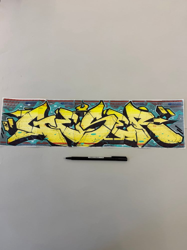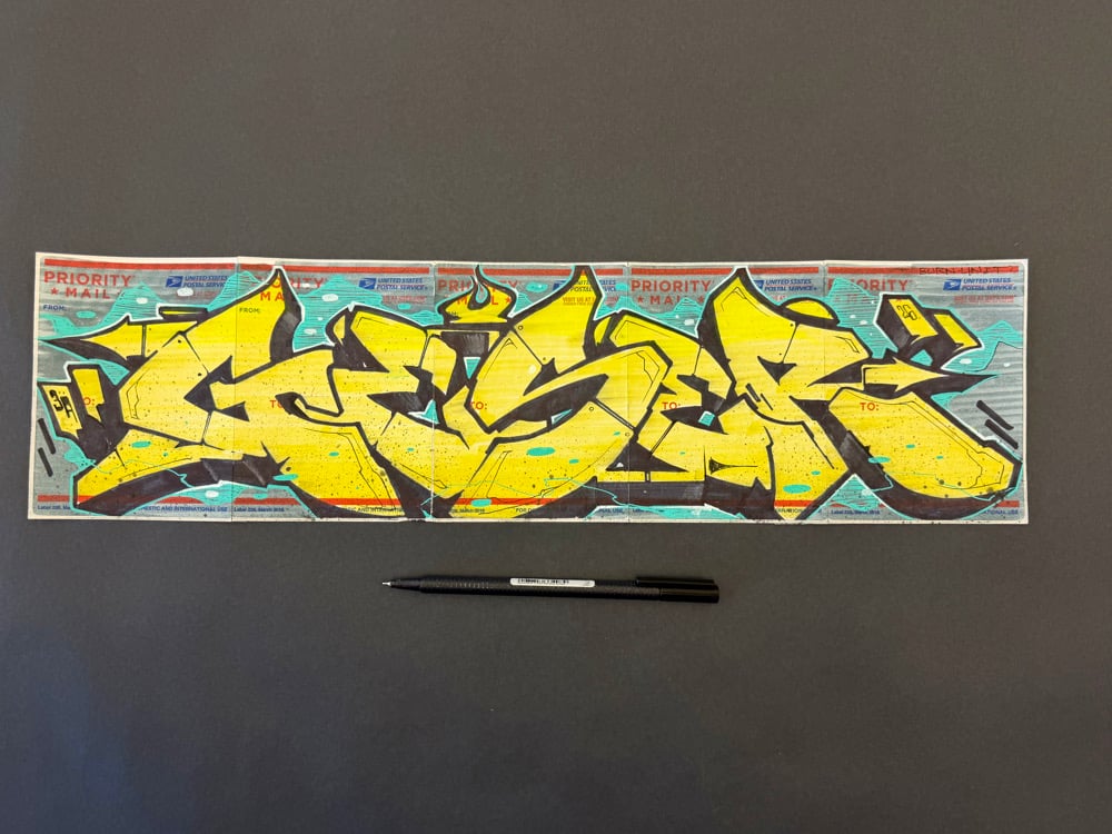 Hand drawn original USPS #228 label 5x joiner. ( GESER style spanning 5 connected labels)