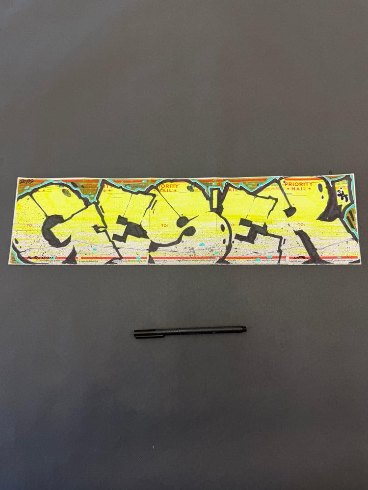 Hand drawn GESER blockbuster across five Postal 228 labels…