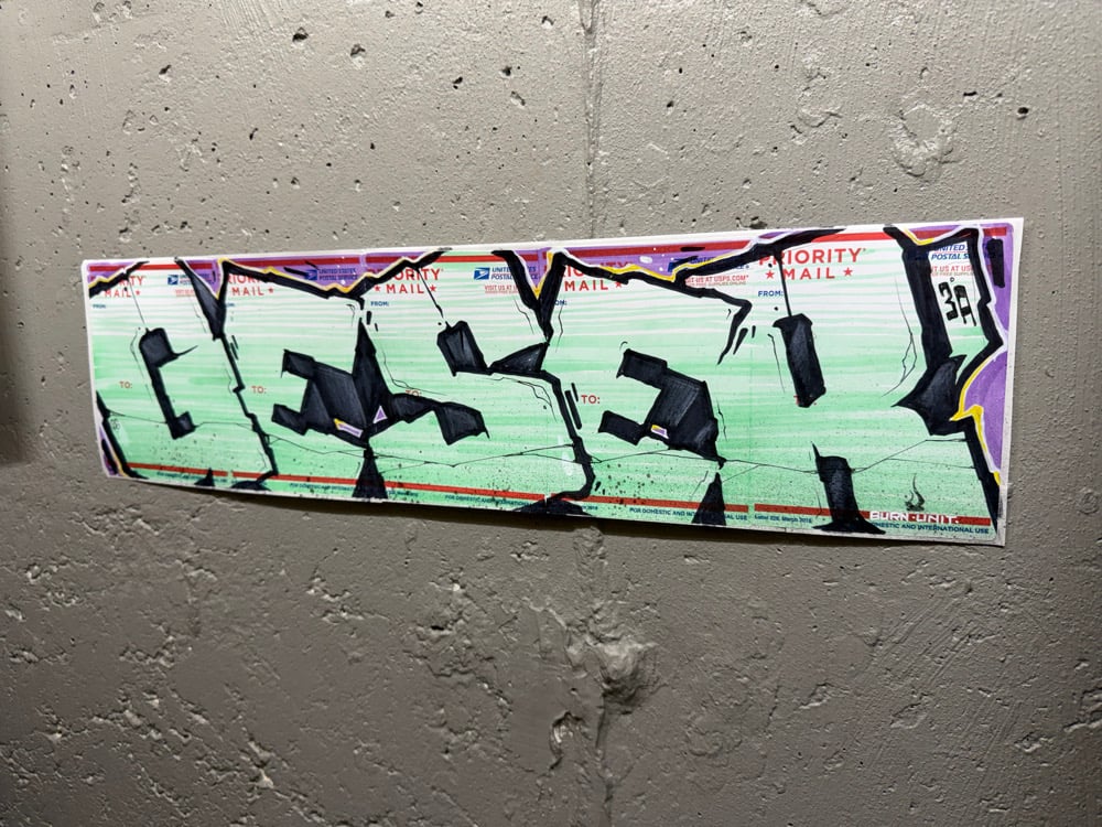 Hand drawn GESER blockbuster across five Postal 228 labels…
